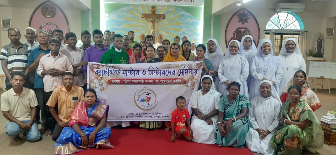 রাজশাহী ধর্মপ্রদেশীয় বাইবেলীয় ও কাটেক্যাটিক্যাল কমিশনের আয়োজনে খ্রিস্টজ্যোতি পালকীয় সেবাকেন্দ্রে বিভিন্ন ধর্মপল্লীর চল্লিশজন কাটেখিস্ট মাস্টার ও সিস্টার নিয়ে অনুষ্ঠিত হয় জুবিলী সেমিনার। ১১ থেকে ১৩ আগষ্ট অনুষ্ঠিত সেমিনারের উদ্বোধনীতে উপস্থিত ছিলেন কমিশনের আহ্বায়ক ফাদার ফাবিয়ান মারাণ্ডী ও খ্রিস্টজ্যোতি পালকীয় সেবাকেন্দ্রের পরিচালক ফাদার সাগর কোড়াইয়া।