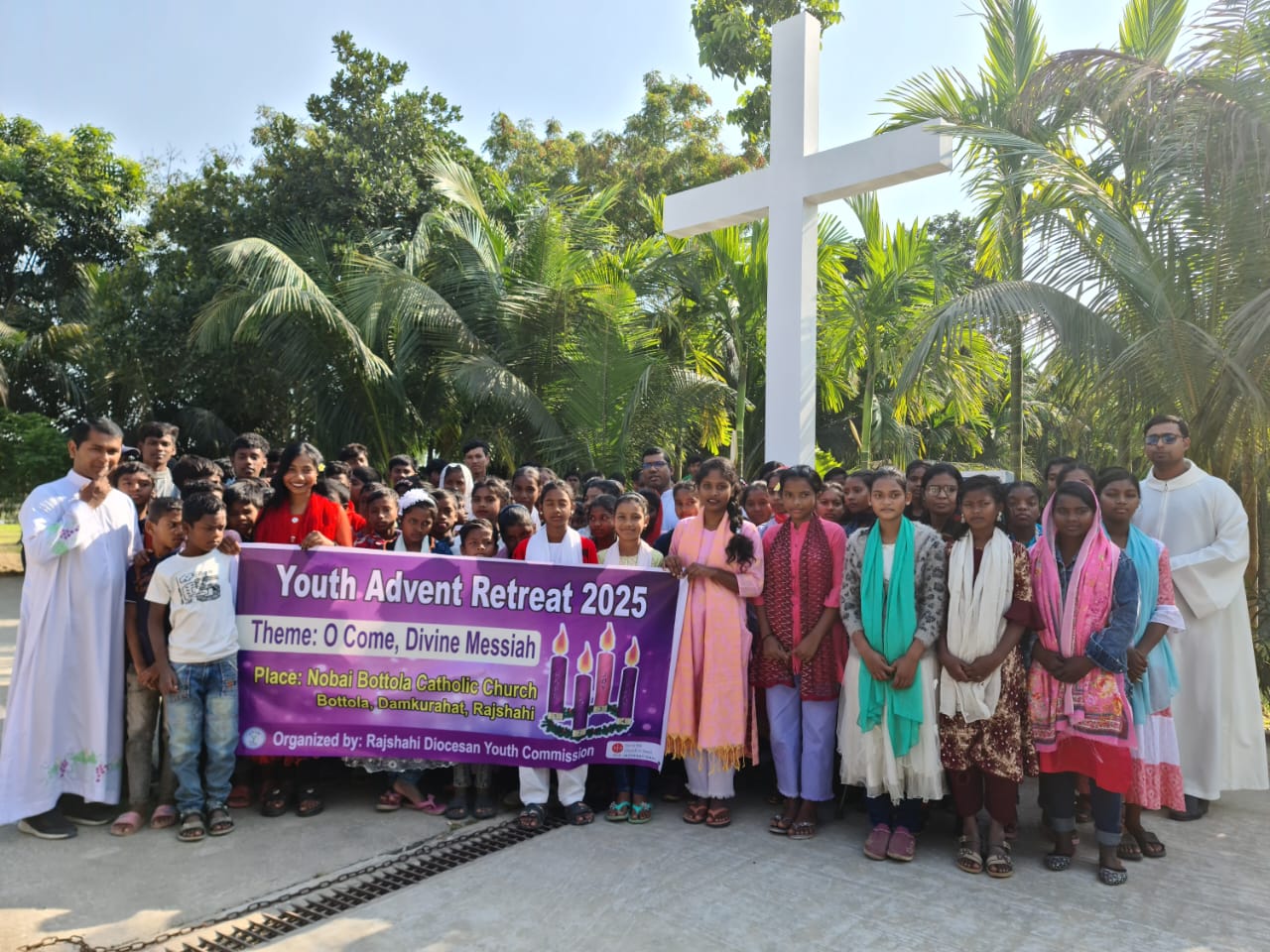 রাজশাহী ধর্মপ্রদেশের যুব কমিশনের সহযোগিতায় নবাই বটতলা রক্ষাকারিণী মা-মারীয়ার ধর্মপল্লীতে ১২০ জন যুবক-যুবতীর অংশগ্রহণে অর্ধদিবসব্যাপী আগমনকালীন নির্জনধ্যান ও পাপস্বীকার অনুষ্ঠিত হয়। ১৩ ডিসেম্বর নির্জনধ্যানে “যিশুর প্রতীক্ষায়: আলোর পথেযাত্রা” মূলসুর উপর সহভাগিতা করেন ফাদার শেখর ফ্রান্সিস কস্তা। তিনি বলেন, যিশুর আগমনের মধ্য দিয়ে আমরা অন্ধকার থেকে বের হয়ে আলোতে ফিরে আসার আহ্বান পাই। অন্ধকারে বাস করা মানে হলো পাপের মধ্যে থাকা। পাপস্বীকার করার মাধ্যমে আমরা পুনরায় যিশুর কাছে ফিরে আসি এবং আামাদের জীবন আলোকিত হয়ে ওঠে।
