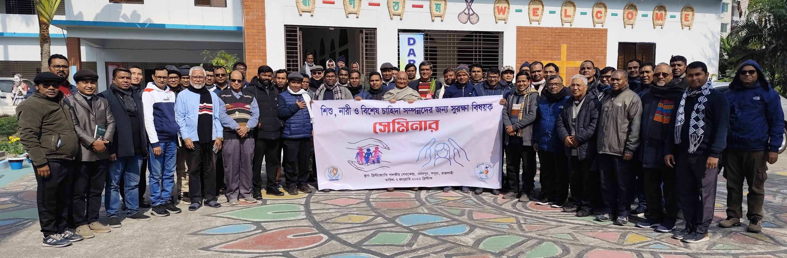 খ্রিস্টজ্যোতি পালকীয় সেবাকেন্দ্রে রাজশাহী ধর্মপ্রদেশে কর্মরত যাজকদের অংশগ্রহণে অনুষ্ঠিত হয়েছে সুরক্ষা বিষয়ক অর্ধদিবসব্যাপী সেমিনার। ৭ জানুয়ারি অনুষ্ঠিত সেমিনারে উপস্থিত ছিলেন বিশপ জের্ভাস রোজারিও ও সাতান্নজন যাজক। শিশু, নারী ও বিশেষ চাহিদা সম্পন্ন ব্যক্তিদের জন্য সুরক্ষা বিষয়ে আলোচনা করেন নটর ডেম কলেজের অধ্যাপক ও বাংলাদেশ কাথিলিক বিশপ কনফারেন্সের অধীনস্থ বিশপীয় ন্যায় ও শান্তি কমিশনের সচিব ফাদার লিটন হিউবার্ট গমেজ, সিএসসি ও ফাদার উত্তম যোহন রোজারিও।