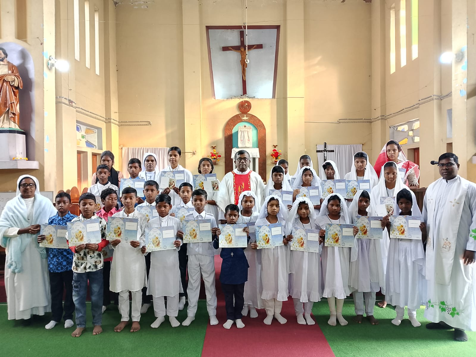 খ্রিস্টযাগের পর প্রথম খ্রিস্টপ্রসাদ গ্রহণকারীদের সার্টিফিকেট প্রদান করা হয়।