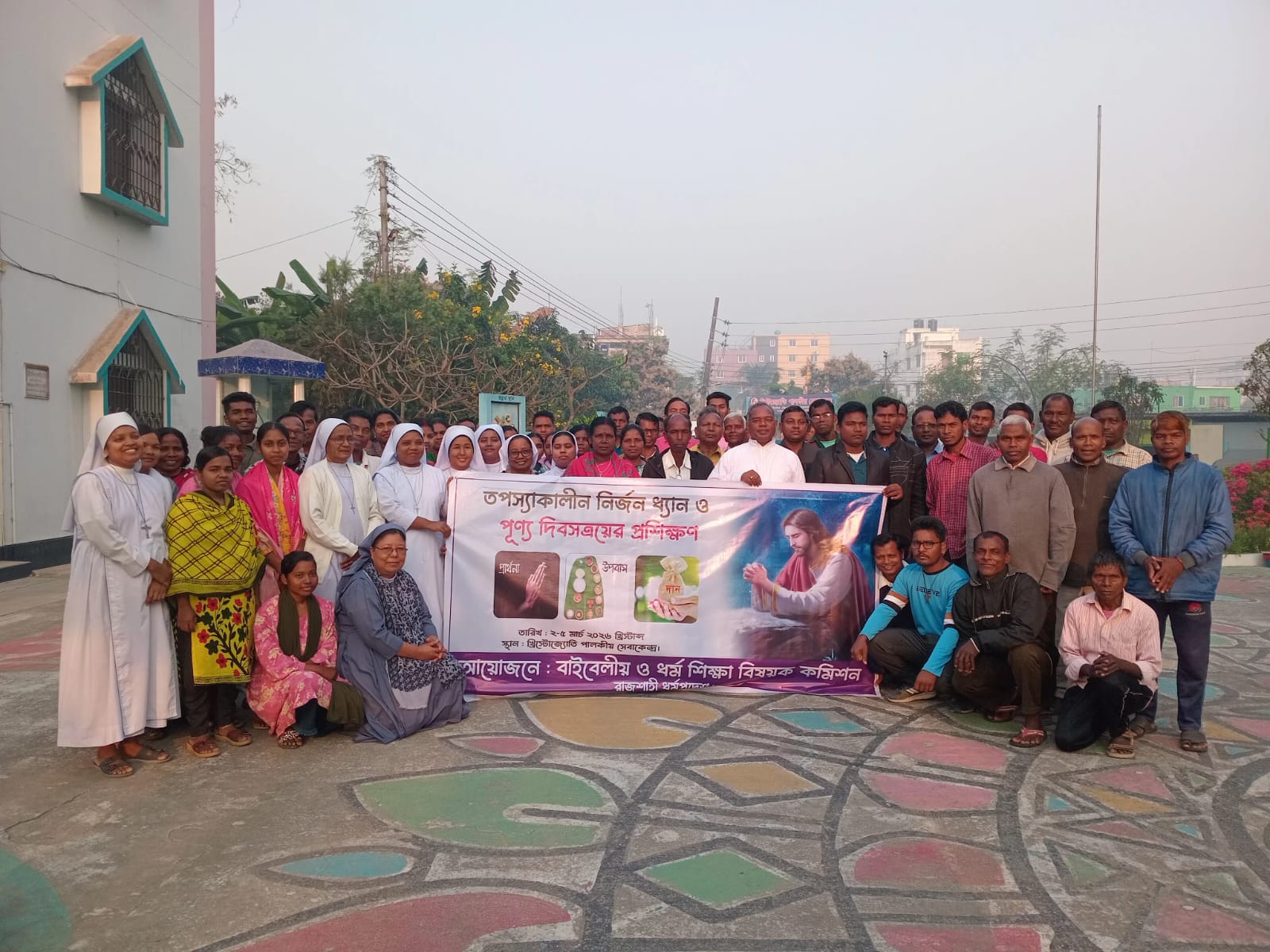 রাজশাহী ধর্মপ্রদেশের পাস্টোরাল সেন্টারে কাটেখিস্ট সিস্টার ও প্রার্থনা পরিচালকদের অংশগ্রহণে অনুষ্ঠিত হয়েছে তপস্যাকালীন নির্জনধ্যান ও পুণ্য দিবসত্রয়ের প্রশিক্ষণ। ২ থেকে ৫ মার্চ রাজশাহী ধর্মপ্রদেশীয় বাইবেলীয় ও ক্যাটেক্যাটিক্যাল কমিশনের উদ্যোগে এই নির্জনধ্যান ও প্রশিক্ষণ অনুষ্ঠিত হয়।